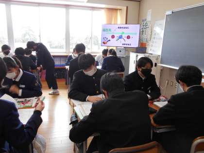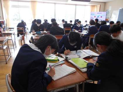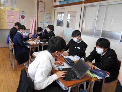 理科の授業では、これまでの復習をグループごとに取り組みました。分からないところは、班員にどんどん質問しましょう。