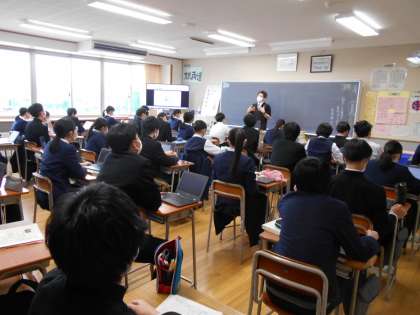 家庭科の授業では、テストの見直しの後、消費者トラブルについて勉強しました。実生活で生かしていきましょう。