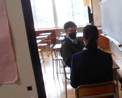英語の授業では、中学校最後のパフォーマンステストを一人ずつ行いました。これまでいろいろな形で取り組んできました。進学先でぜひ生かしましょう。