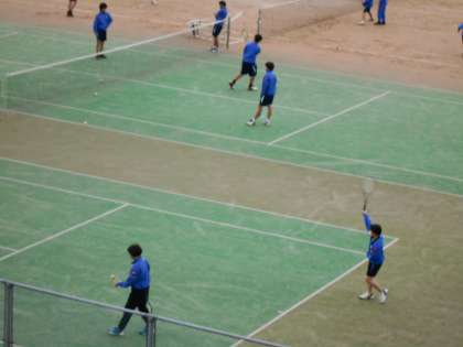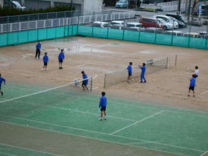 ソフトテニス部は、水たまりもあり、コンディションはよいとは言えませんでしたが、今日もコートで練習をしました。