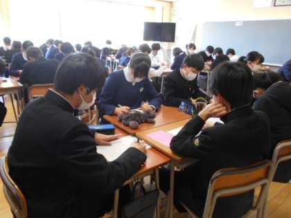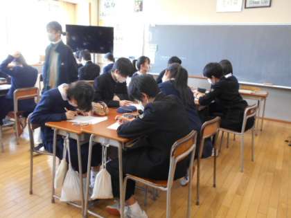 今日のNTでの学び愛は、班長会作成の「理科のスタディプリント」でした。簡単な問題から、基本を組み合わせて解く難問までそろった問題に、真剣に取り組んでいました。様々な考え方ができる問題もあり、自分の考え方を紹介し合っている班もありました。