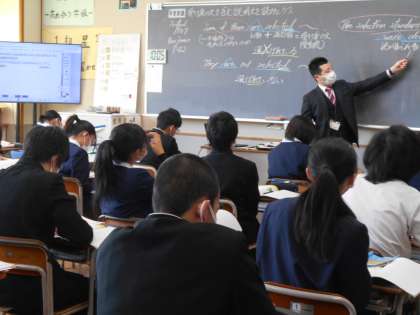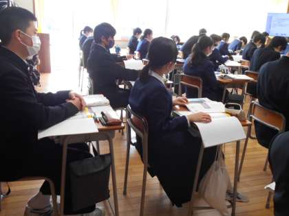 英語の授業では、受け身の練習をしています。動詞の部分の変化を覚え、表現できるようにしておきましょう。