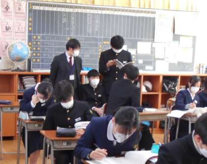 理科の授業でも、ワークシートやテキストを使って復習をしました。もう数日となりましたが、県立一般選抜まで、今までで一番使ってきた物を使って見直しをすることをお勧めします。
