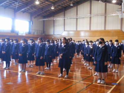 1、2年生合同で、卒業生を送る歌「変わらないもの」の合唱練習を行いました。在校生全員で卒業式に出ることはできませんが、1、2年生で心を込めて歌った合唱で、卒業生を送る予定です。