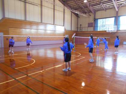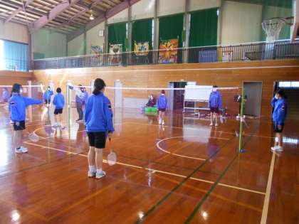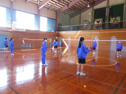 女子保健体育ではバドミントンに取り組みました。今日は、サーブの仕方、ラリー、スマッシュを特に練習しました。