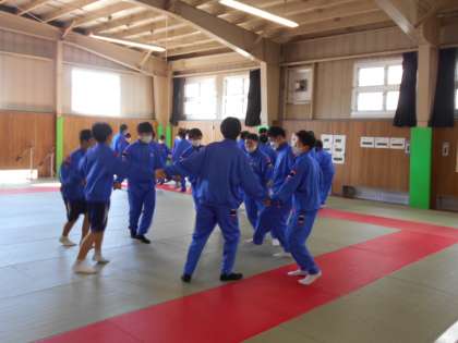 男子保健体育の授業では、フォークダンスに取り組みました。小学校でもやったことがあるそうです。和やかな様子でほっこりしました。
