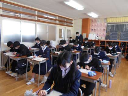 数学の授業でも、分からないところは仲間と確認しながら、復習を進めました。計算間違いがないように、見直す時間を大切にしましょう。
