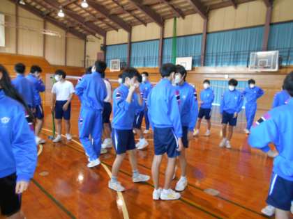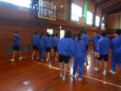 保健体育の授業が終わり、体育館を後にするところです。三年間頑張りました。次に体育館に入るのは、卒業式の練習ですね。