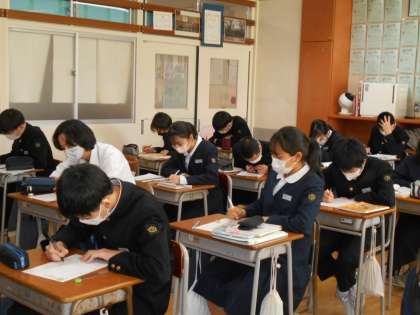 数学の授業では、ワークシート等を使ってこれまでの学習の振り返りをしました。分からないところは先生に質問しながら進めていました。