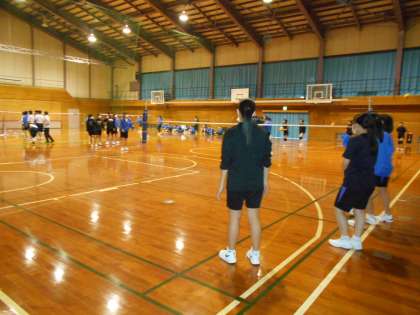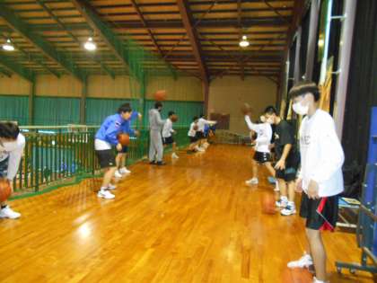 バスケットボール部は、男女が交代でコートを使い練習をしました。