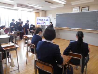 執行部と学年生徒会のメンバーで、3年生を送る会の準備を進めています。送る会本番で、3年生への感謝の思いを伝えられるよう、試行錯誤しながら進めていました。