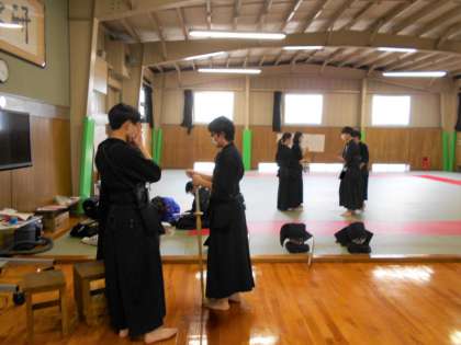 剣道部は、グループを決めてこの後試合形式で練習をするところでした。