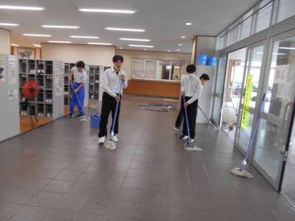 先生の声かけに応えてくれた有志4名が、生徒玄関の床をきれいに磨いてくれました。卒業式を前に、とてもきれいになり、3年生のはなむけにもなりました。ご苦労様でした。ありがとう。