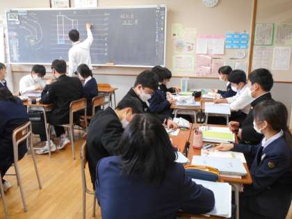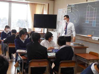 理科の授業では、凝灰岩、かぎ層について勉強しました。その他の事柄についても、グループ内で互いに確認しながら進めました。