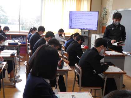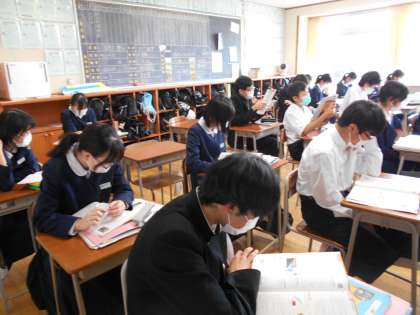 英語の授業では、本文の音読練習をしました。登場人物の声を想像して、声を変えて読んでいたようです。面白かったです。