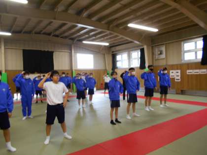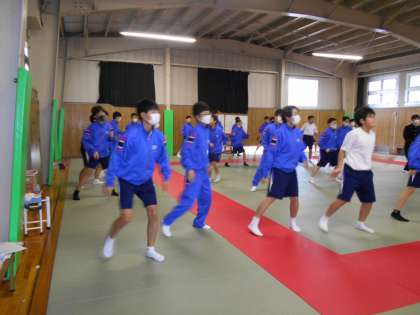 保健体育の授業では、男子は南武館でダンスの練習をしました。みんな動画を見ながら、軽快なステップができていました。