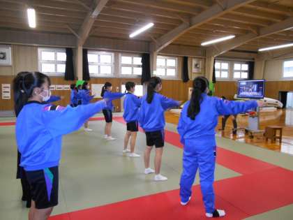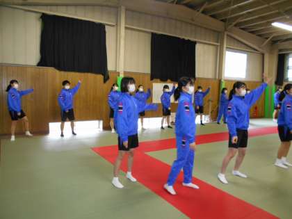 女子保健体育の授業では、ダンスの練習をしました。途中、星を描く動きもあるようで、みんなで書き順を確かめていました。