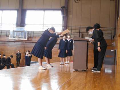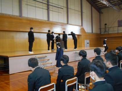卒業証書授与の際、どのような動きをするか、だいたいつかんだようで、スムーズに動いていました。
