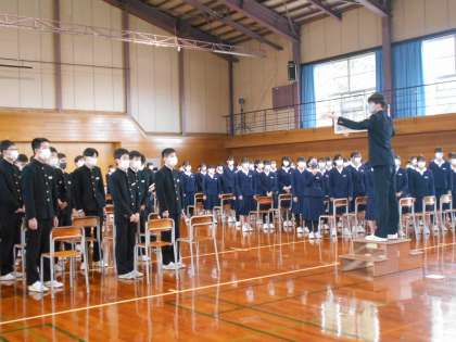 卒業式にむけて合唱練習を行いました。前回よりも歌声がまとまっており、体育館いっぱいに声を響かせていました。南中の校歌をみんなで歌うことができるのも、残りわずかとなりました。まずは、明日の予行練習です。みんなで合唱できる時間を大切に、そして歌っている自分自身が感動できるような合唱にできるよう、頑張ろう3年生!