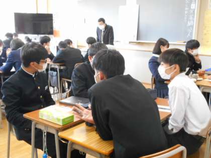 これまで、様々な形で平和学習を進めてきましたが、今日は、修学旅行で「ヒロシマ」を訪れた際にできることを考えました。個人でできること、学年でできることなど、一人一人真剣に考えていました。グループやクラスで意見を出し合ったりもしました。それぞれのクラスから出た意見を修学旅行実行委員で集約し、来年度の修学旅行での平和学習に繋いでいく予定です。