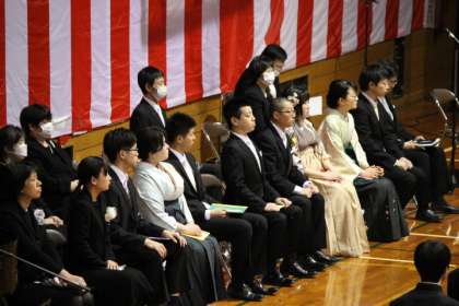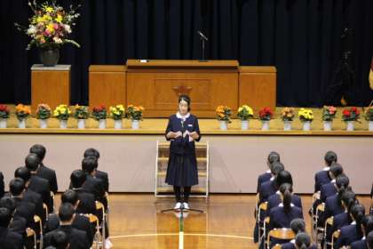 在校生代表生徒の送辞の後、1、2年生で歌った送別の歌「変わらないもの」の映像がスクリーンに映し出されました。卒業式に向けて練習を重ね、事前に録画したものです。学校では、大切な人とのお別れの場面でよく歌われる1曲です。在校生全員で、3年生の前で直接歌うことはできませんでしたが、いつも導いてくれた優しく、頼もしい先輩たちへの感謝の気持ちはきっと伝わったはずです。
