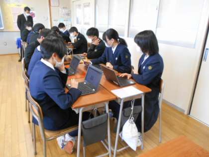 「南中平和宣言」を考えました、これまでの平和学習の集大成として、広島の地で宣言する内容です。過去の平和宣言を参考にしながら、平和への思いや、宣言に入れたいキーワード等を、班ごとにジャムボードに書き出しました。この後、修学旅行実行委員で、それぞれの思いを基に、この学年の「年中平和宣言」を考えていく予定です。