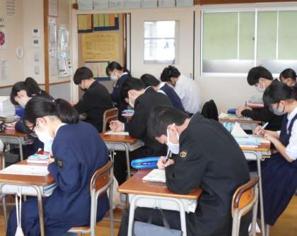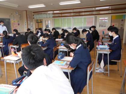 英語の授業でも、これまでの復習をしました。この一年、たくさんの新出単語があったと思いますが、ぜひ動詞からしっかり復習して覚えておきましょう。
