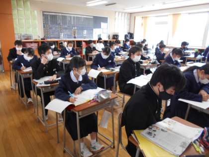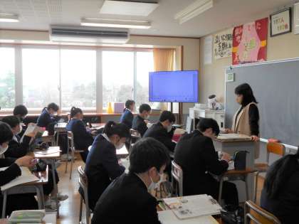 英語の授業では、画面に映し出されたフラッシュカードを見ながら、単語の練習をしました。ぱっと声に出して言えたでしょうか。