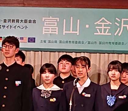 本日、「富山・金沢こどもサミット」がパレブラン高志会館で行われ、本校からは2年生丸山さんが代表として参加しました。これまで、富山市内の各中学校の代表25名と県内の高校生5名が、5つのグループに分かれて、「誰にとってよりよいみらいとなるように、私たちみんなのウェルビーイングのたまに、いま私たちができること」について協議していきました。