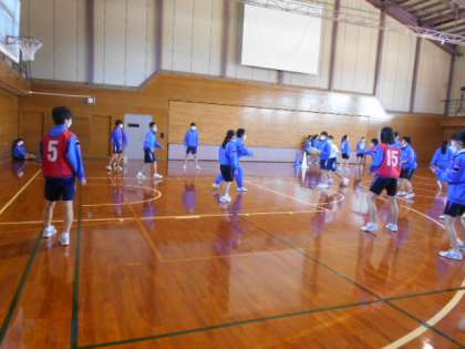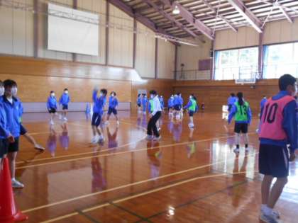 2種目目は、「パスパス鬼ごっこ」。体育委員が見付けてきた新企画です。「鬼チーム」は、1個のボールをパスし合いながら、相手チームにタッチしますが、ボールを持っている人しかタッチはできません。そして、ボールを持っているときは1歩しか歩けないというルールがあり、「鬼チーム」のチームワークや作戦も重要になる種目でした。最初は戸惑いながらのスタートでしたが、笑顔があふれていました。