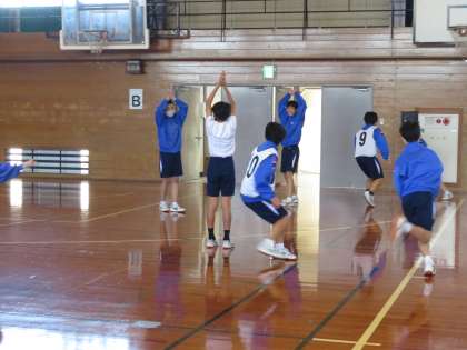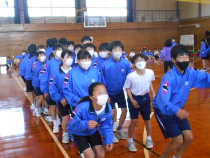 本日1・2限に、体育委員会主催の学年レクリエーションを実施しました。「バナナ鬼ごっこ」、「大縄跳び」、「ボールリレー」の3種目を行い、クラス対抗で競い合いました。各クラス仲間と声をかけ合って、1年間築いてきたチームワークを発揮していました。