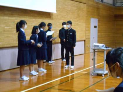 班長からの発表では、後期の活動を振り返り、よかった点や改善点の報告がありました。取組の優秀クラスの表彰もありました。