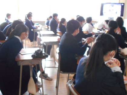社会の授業では、視聴覚教材を使って、近代の歴史について勉強しました。3年生になると公民が始まりますね。
