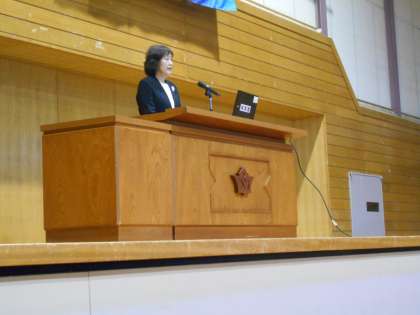 修了式の後に、離任式と退任式を行いました。今年度で本校を去られる先生、長い教員生活の節目を迎えられた先生とお別れしました。