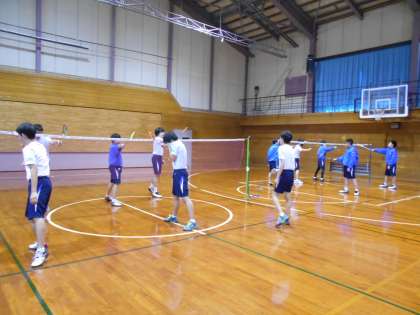 顧問の先生の号令で、何回も練習をしていました。うまくステップを身に付けられたでしょうか。明日も頑張りましょう。