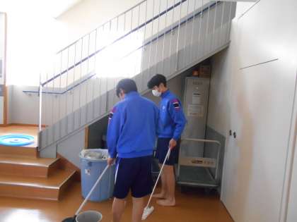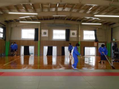 剣道部は、道場の清掃をしました。床、部室、窓のさん、壁。いろいろなところをきれいに市、すっきりしました。より練習に励めそうです。