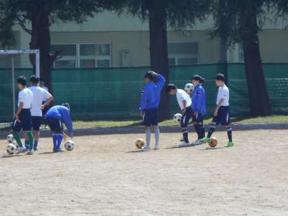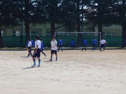 サッカー部は、元気いっぱいグラウンドで練習をしていました。来年度の目標を立てて頑張ってほしいと思います。