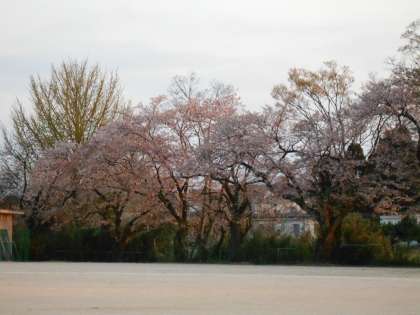 最近の暖かさの中で、残念ながら、今週末の入学式を待たずに桜の見頃も過ぎました。入学式では、葉桜となる桜でお出迎えとなりそうです。散り始めた桜ですが、見納めの写真を掲載します。