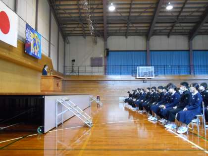 校長先生から、南中プライドを胸に目標をもってそれぞれの学年の役割を果たしながら新学期をスタートさせてほしい、とお話がありました。元気に校歌を歌い上げ、気持ちよく新年度をスタートすることができました!今年度も生徒たちの成長に期待しています。
