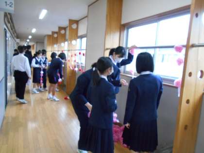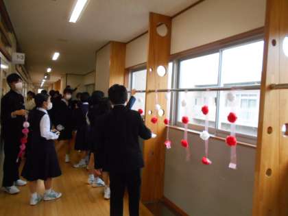 1年生教室前の廊下に、華やいだ飾り付けになりました。きっと1年生の皆さんは、喜んでくれたことでしょう。教室内の飾り付けと併せて、ご苦労様でした。