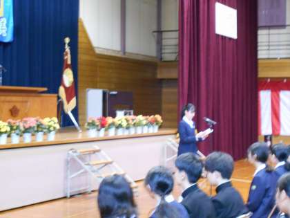 生徒会長から、いろいろな行事をみんなで取り組んでいく中で、心配なことも乗り越えてきた自分たちの経験から、みんな大丈夫だよと温かいメッセージがありました。