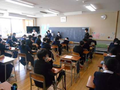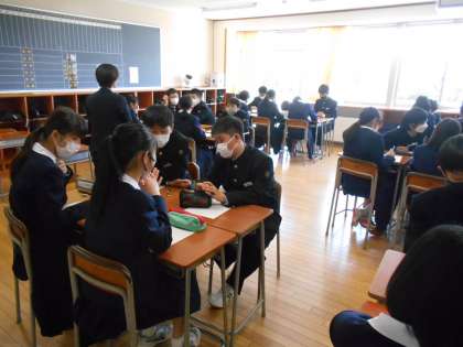 本日の学級活動で、学級目標決めを行いました。グループで話し合ったり、学級代表の進行でクラス全体で話し合ったりして、アイディアを出し合いました。左:1組、中:2組、右:4組の様子です。