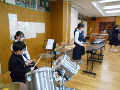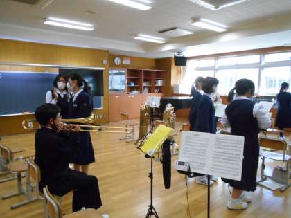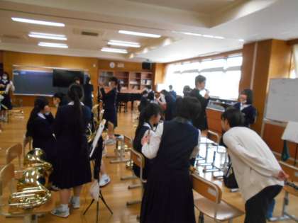 吹奏楽部でも、たくさんの1年生が体験していました。音が出ると楽しいようでとてもよい表情が見られました。みんな入部してくれることを期待しています。