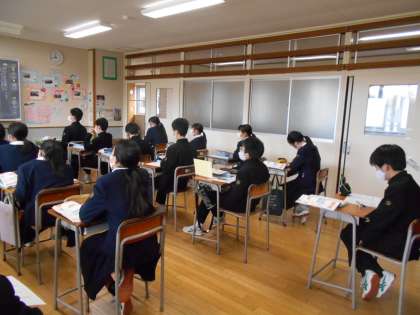 理科の授業では、炭酸水素ナトリウムを加熱したときの変化について勉強しました。実験するときの注意点も確認しました。