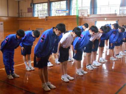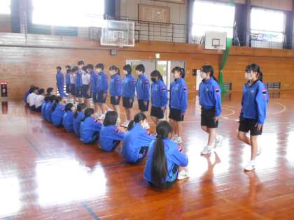 保健体育の様子です。今日は集団行動として、号令に合わせて正しく動く練習をしており、ペアで互いに見合い、できているかの確認もしました。