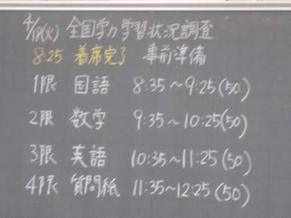 4月18日(火)3学年 全国学力・学習状況調査(その1)