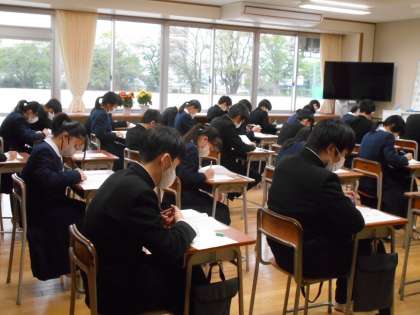 3年生は、午前中は全国学力・学習状況調査に取り組みました。今年度は、国語、数学、英語の3教科と質問紙への回答でした。