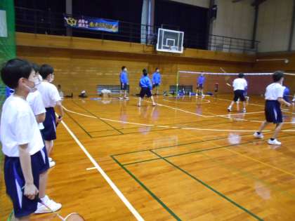 男子バドミントン部の様子です。1年生は順番にコートで打たせてもらっていました。たくさんの体験者がいて、待ち時間が長く感じたかもしれません。