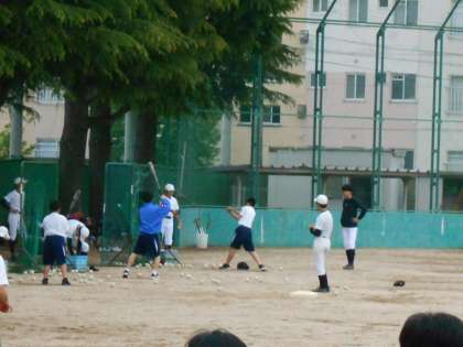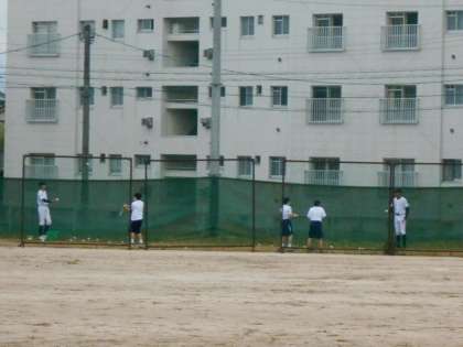 野球部では、1年生がバッティングや投球を体験していました。たくさん入ってくれるとよいですね。