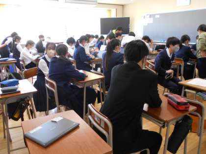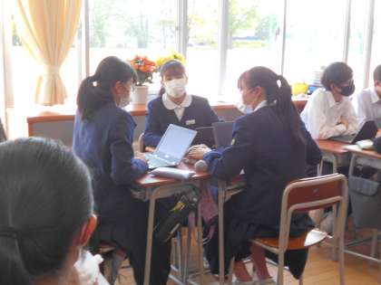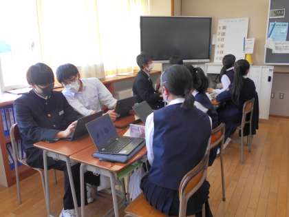 クロームブックを用いて、細かい部分を調べ直している班もありました。2年生の時のクラスのメンバーで集まったことで、懐かしさを感じた生徒も多かったようです。